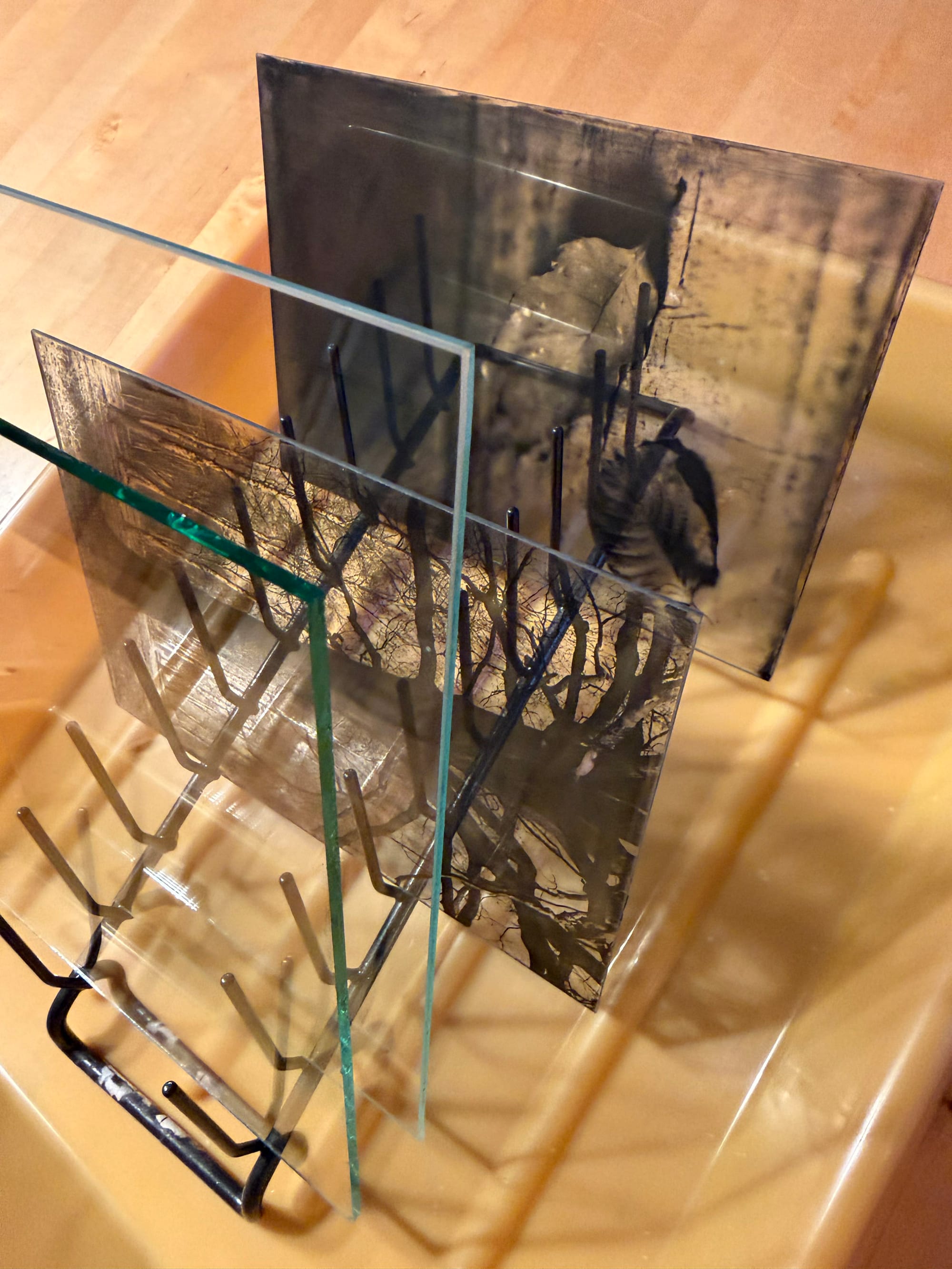 Der Freitag begann mit der Opalotypie, einem Direktverfahren aus der Mitte des 19. Jahrhunderts. Mit diesem Verfahren kann man ein Positivbild auf Glas erstellen. Hierbei wird ein Negativ mit einem Vergrößerer auf die frisch beschichtete Glasplatte projiziert, entwickelt und Verstärkt. Die fertige Platte wird dann von hinten mit weißer Farbe beschichtet. Das Verfahren ist eher unter dem Namen Orotone bekannt, der einzige Unterschied ist dann allerdings nur die Farbe von der Rückseite – die wäre in dem Fall Orotone dann Gold.