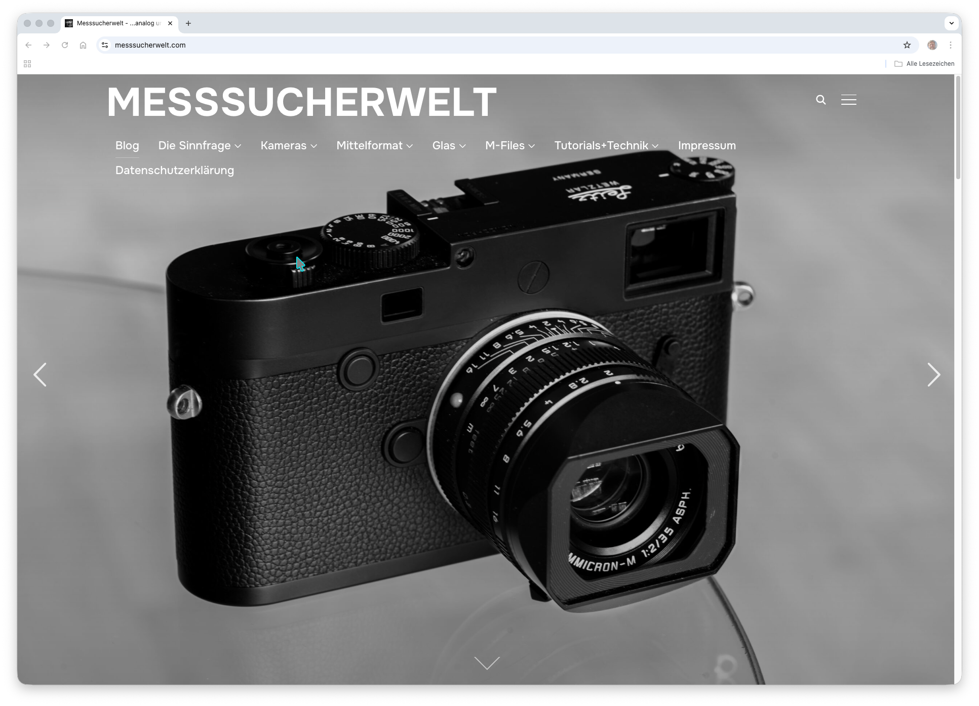 Der Name verspricht Messsucher, und die sind tatsächlich der Ausgangspunkt. Sassenberg entdeckte das Leica M-System nach Jahren des wachsenden Überdrusses an digitaler „Featuritis", wie er es nennt, und zog daraus eine doppelte Konsequenz: zum Messsucher, und gleichzeitig zurück zur analogen Photographie. Beides zusammen ergibt eine Haltung, keine Ideologie. Die analoge M6 und die digitale M11, die Leica IIIf aus dem Jahr 1952 und die Q3 43 erscheinen auf dieser Seite mit gleichem Recht nebeneinander. Das ist kein Widerspruch, den Sassenberg auflöst, es ist einer, den er auslebt, und genau das macht die Seite interessant.